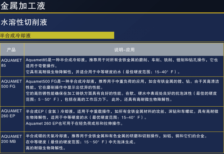 Aquamet 85是一種半合成冷卻液,推薦用于對(duì)所有含鐵金屬的磨削、車(chē)削、銑削、鏜削和鉆孔操作,它也適用于彎管操作。
