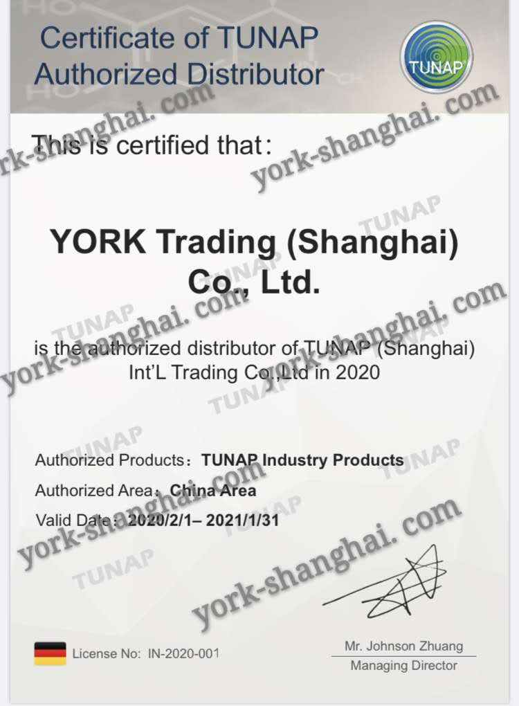 熱烈慶祝由可貿(mào)易(上海)有限公司成為德國(guó)統(tǒng)耐保TUNAP代理商